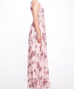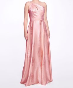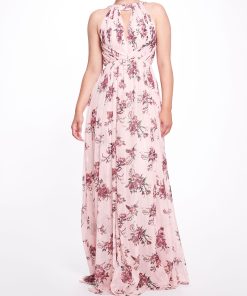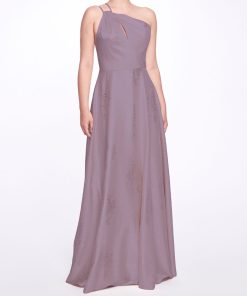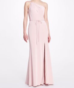 Marchesa Notte Bridal Women’s Eveningwear Blush Pink One Shoulder Two Strap Chiffon Gown | Blush