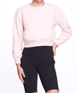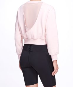 Marchesa Notte Bridal Women’s Blush Pink Crew Neck Cropped Sweatshirt With Mesh Cutout Back | Blush