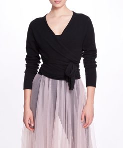 The Anne Wrap Sweater features soft, light weight fabric with long sleeves, deep v-neckline, and thick wrap tie.