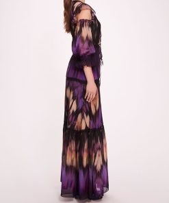 Marchesa Notte Bridal Women’s Daywear Abstract Viscose Maxi Dress | Purple Multi