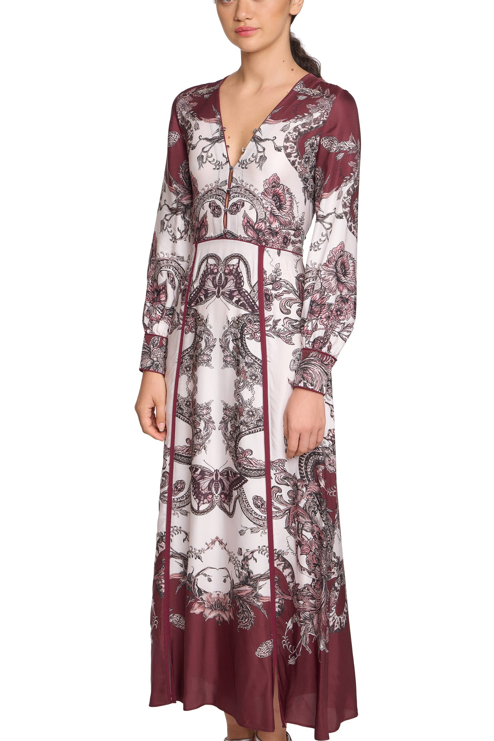 The Corded Twill Midi Dress features a V-neckline, long sleeves, and chiffon corded accent piping. Crafted from viscose twill, the relaxed fit dress is complete with front leg slits and a rope belt for added texture and shape.