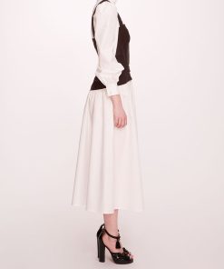 Marchesa Notte Bridal Women’s Daywear Faux Leather Poplin Corset Dress | Ivory Chocolate