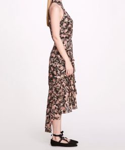 An enchantment of florals, this printed viscose dress features a halter neckline with cascading ruffles and picot edging.