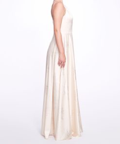 The Barletta gown is the epitome of glamour. Featuring a one-shoulder peekaboo design and hidden floral printed, this dress is the perfect rose in a garden.