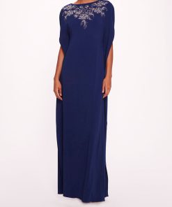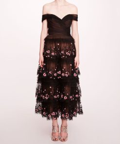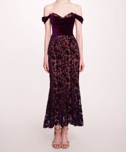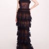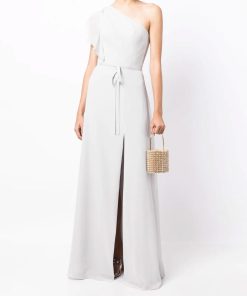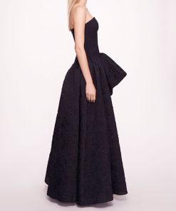 The Calathea Gown is a strapless gown designed with calathea cloqué detailed on 4-way stretch crepe. The ballgown features a high slit and dramatic bow.