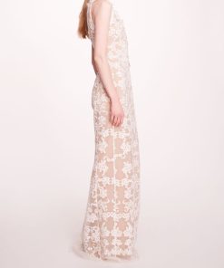 Exude timeless elegance in the Corded Column Gown, crafted from exquisite corded lace and adorned with delicate floral appliqués. This sleeveless silhouette gracefully hugs your figure, creating a stunning profile for any formal occasion.