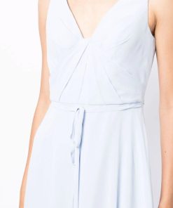 Marchesa Notte Bridal Women’s Eveningwear Dove Grey Gown With Open Back Cutout And Waist Tie | Ice Blue