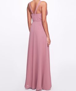 Marchesa Notte Bridal Women’s Eveningwear Mauve Pink V-neck Gown With Waist Tie | Mauve
