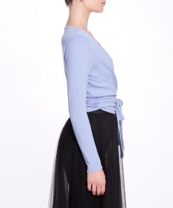 The Anne Wrap Sweater features soft, light weight fabric with long sleeves, deep v-neckline, and thick wrap tie.