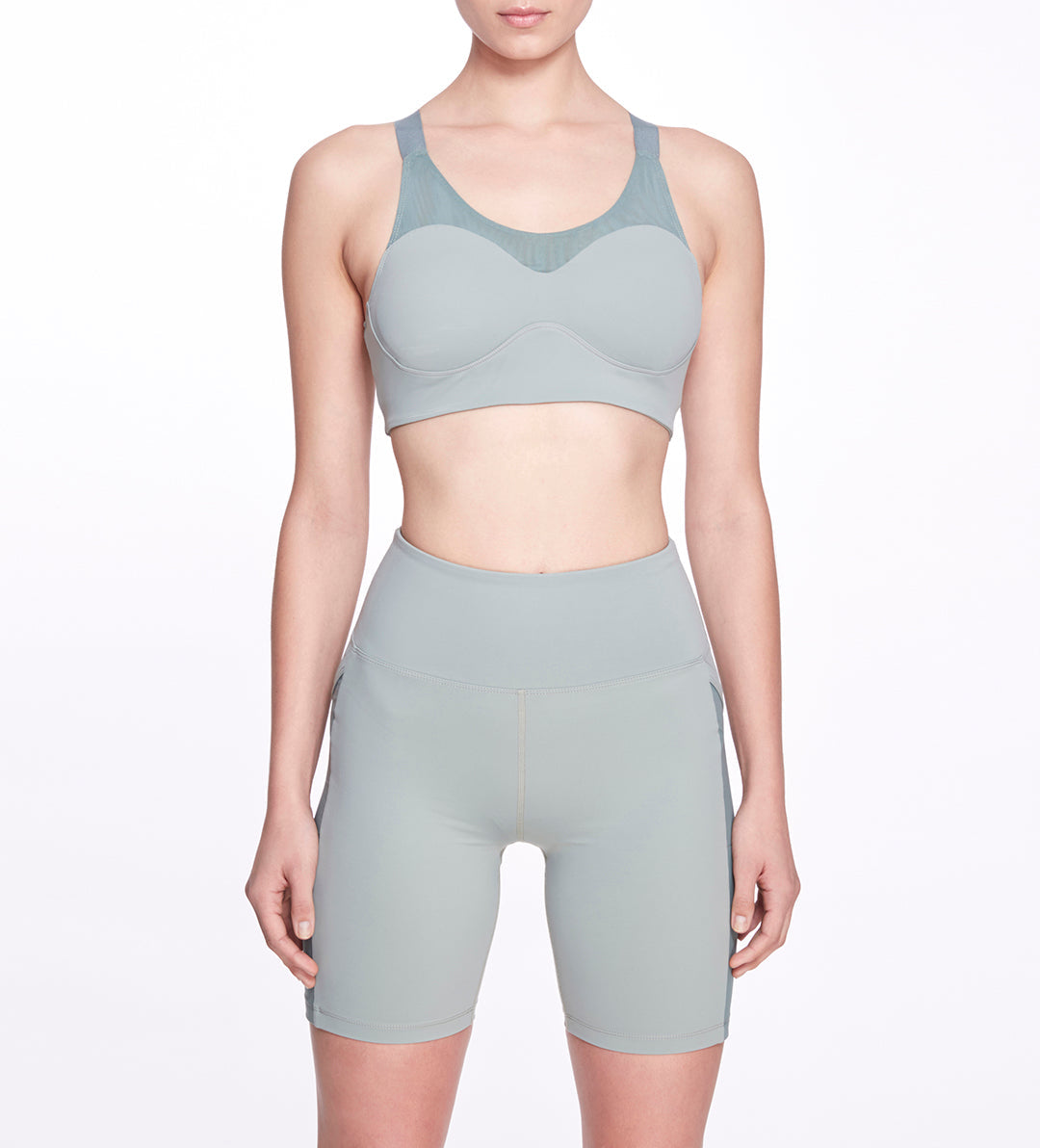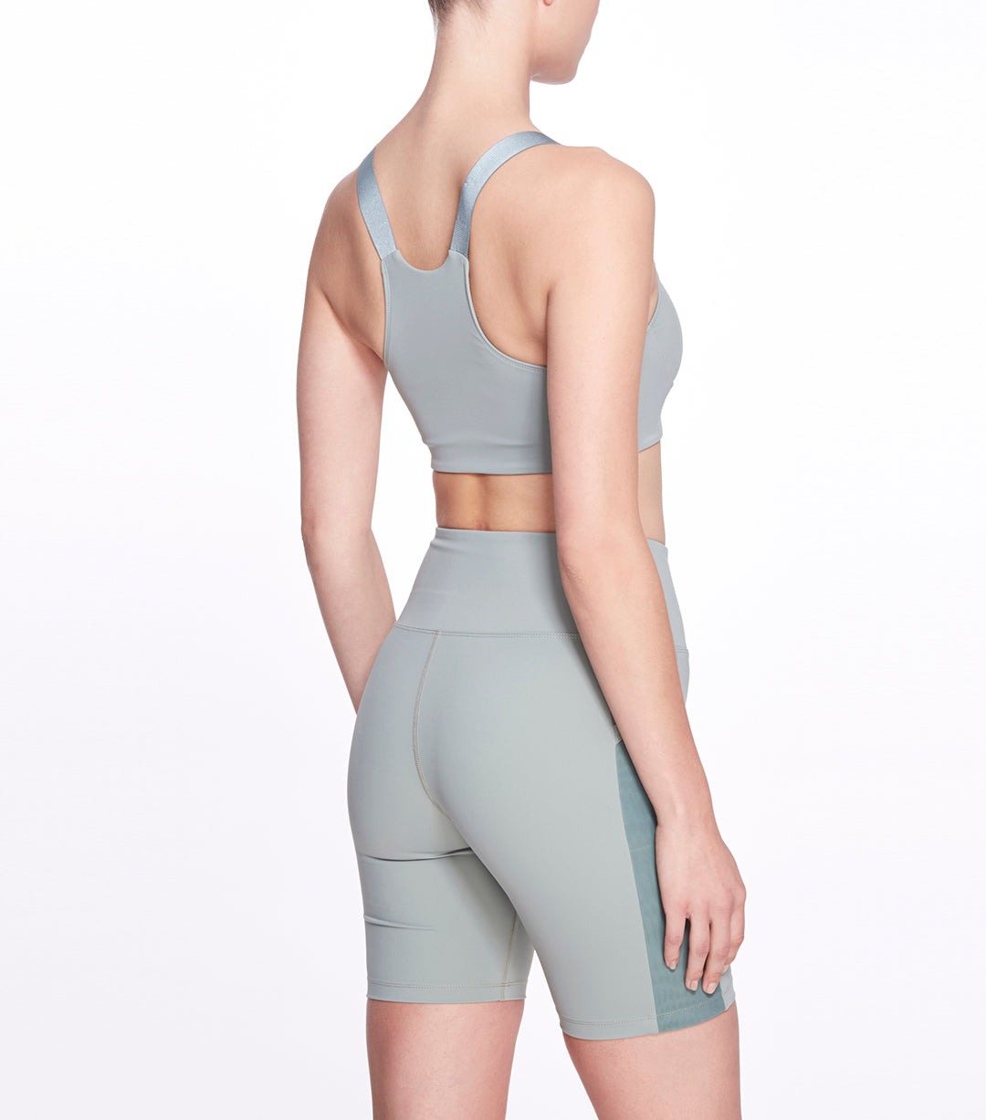 The Olivia Bra features a deep u-neck neckline and racer back. This sports top in the color “Sage” can be worn alone or with the “Sage” Olivia Shorts as part of a chic matching set.