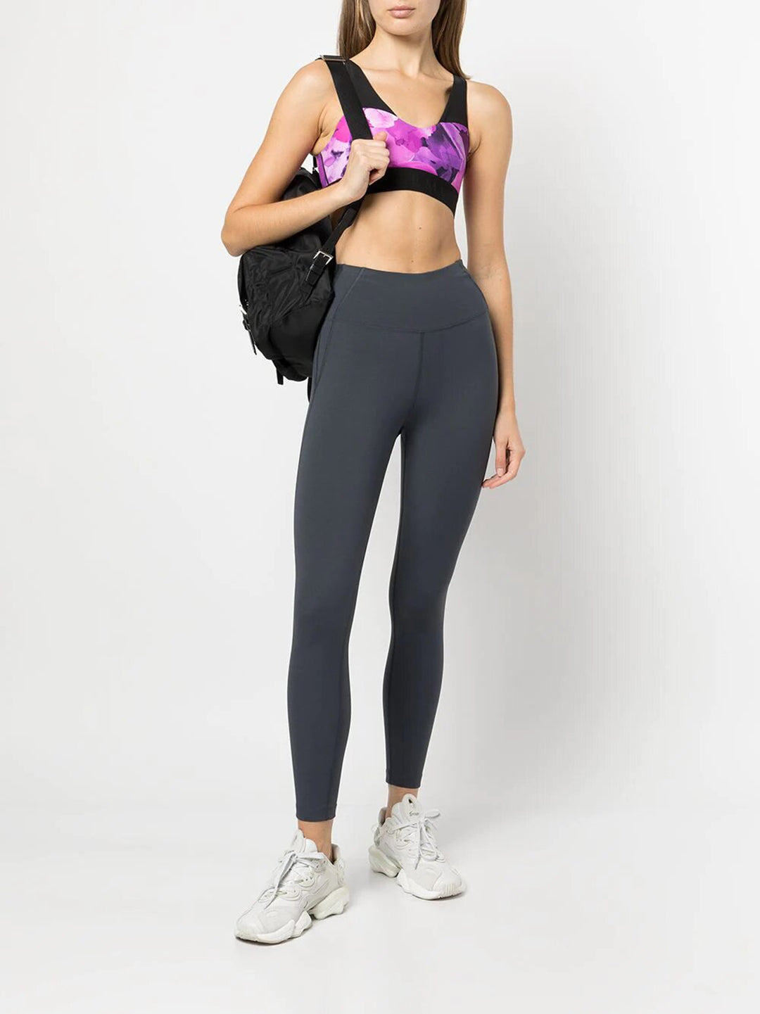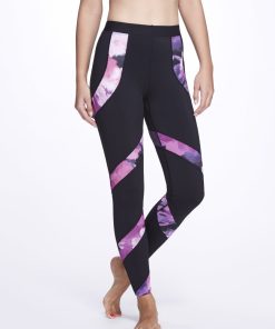 The Coco Bra features a sleeveless design, scoop neckline, sheer panel and a lace-up detail in the back. A lightweight smooth compression fit and super smooth contrasting black and purple multi performance fabric pieced in sheer power mesh is complemented by a wide soft elasticized underband for an excellent fit.