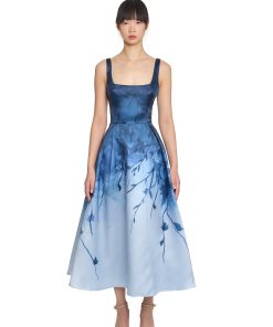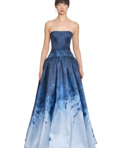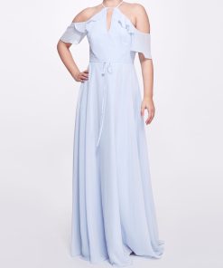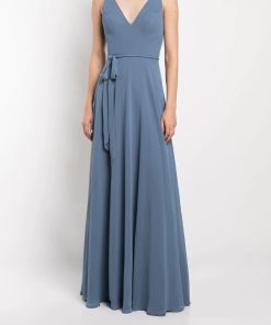 Marchesa Notte Bridal Women’s Eveningwear Dusty Blue V-neck Gown With Waist Tie | Dusty Blue