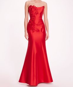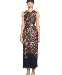 Marchesa Notte Bridal Women’s Eveningwear Embroidered Guipure V-neck Cocktail | Black Red