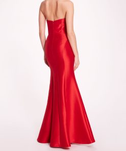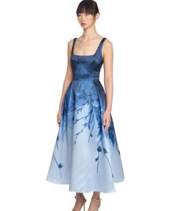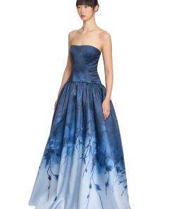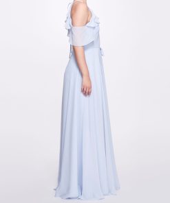 Marchesa Notte Bridal Women’s Eveningwear Dusty Blue V-neck Gown With Waist Tie | Dusty Blue