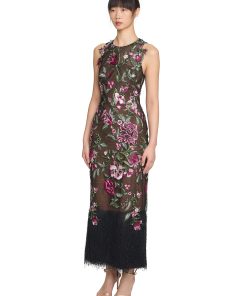 Marchesa Notte Bridal Women’s Eveningwear Embroidered Guipure V-neck Cocktail | Black Red